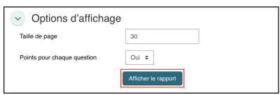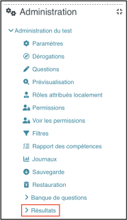 Voir les résultats des étudiantsProcédure : ---⚓ProcédureOuvrez le test.⚓La page d’accueil du test vous permet de voir le nombre de réponses (Tentatives) au test :Parmi les blocs de droite, cliquez sur « Administration » > « Administration du test » > « Résultats »⚓Une nouvelle page de configuration du rapport des résultats s’ouvre.Vous pouvez choisir les tentatives à afficher dans le rapport, puis cliquez sur « Afficher le rapport ».⚓Le rapport s’affiche à la suite. Différents éléments sont intéressants :L’espace 1 vous permet de filtrer les résultats et de trouver très rapidement les notes d’un étudiant en particulier.L’espace 2 vous offre la possibilité de faire une extraction des résultats sous divers formats.Le bouton 3 vous permet de voir les réponses complètes d’un étudiant en particulier.Le reste du tableau vous donne la note totale de l’étudiant et le détail des points par question.SommaireCorriger des questions de type Composition