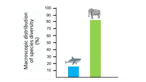 Where is biodiversity highest? On land or in the marine environment?